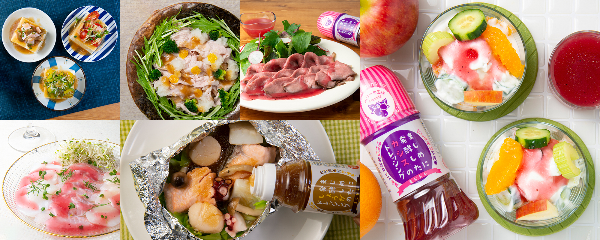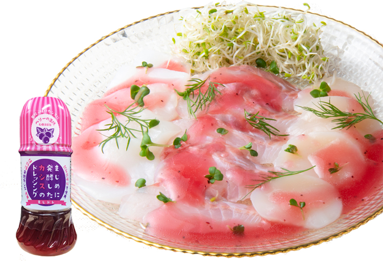 食用なたね油(国内製造)、砂糖、醸造酢、カシスエキス発酵物(カシス、甜菜糖、甜菜糖液糖、甜菜糖オリゴ糖蜜)、食塩、濃縮レモン果汁、香辛料/増粘剤(加工でん粉、キサンタンガム)